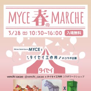 都島駅近く、グルメシティ(ダイエー)の前を東(桜通商店街の方)へすぐ。タイセイシュアーサービスさんが運営するお店が2つ並んでいます。その2店がコラボした春のマルシェ 3月28日に開かれます。